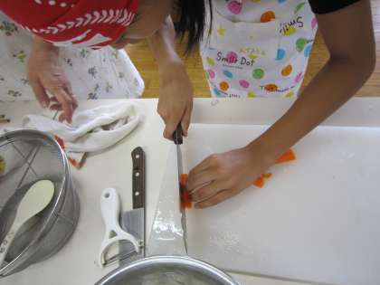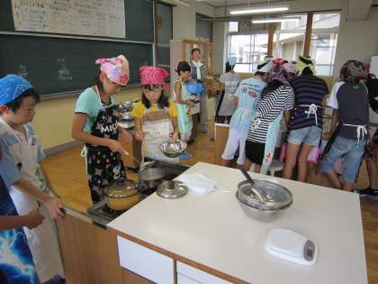 ごはんとみそ汁を作りました。班ごとに味が違っていましたが、おいしくできあがっていました。