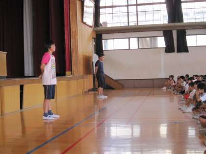 朝の会で団長紹介がありました。二人とも大きな声で自己紹介をすることができました。これからの活やくが楽しみです。