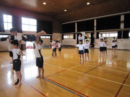 上の人が手と足をしっかり伸ばすことができると綺麗です。