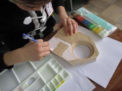 木の上にしっかりと色がのるように,水の量を調節して何度も重ね塗りをして丁寧に取り組んでいます。