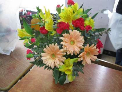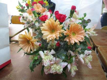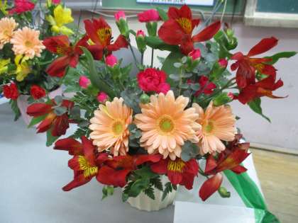 この花は,一本の茎からどんどん分かれていくつもの花を咲かせるおもしろい花と知りました。赤,黄,ピンクといろいろな色があり,選ぶ色によって全体の印象がとても変わるなと思いました。