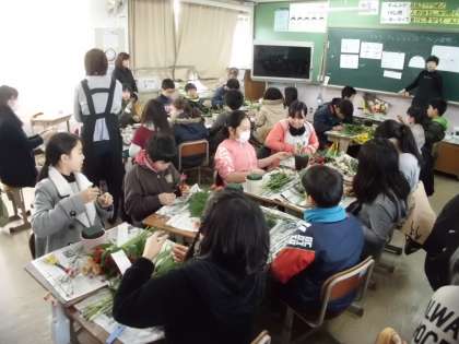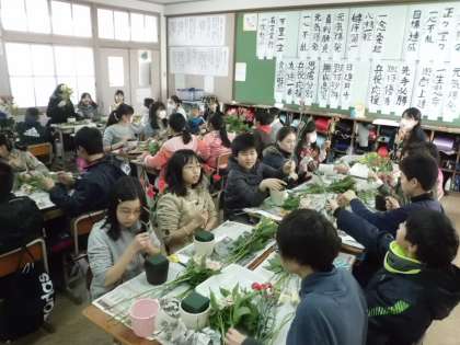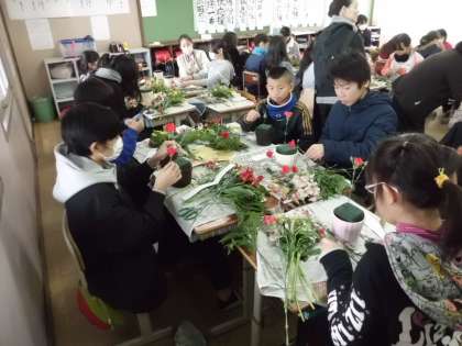 はじめて挑戦する子どもたちも多い中,花育のボランティアの方に丁寧に教えてもらいながら,真剣に取り組んでいました。