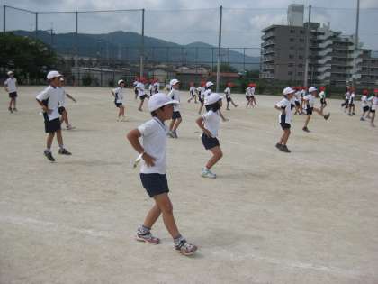 本番の通りに,腕に飾りをつけて,ダンスの練習をしました。