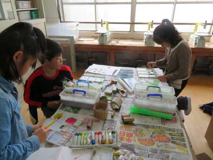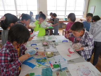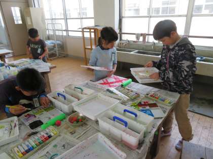 図工の時間に,絵の具を使って