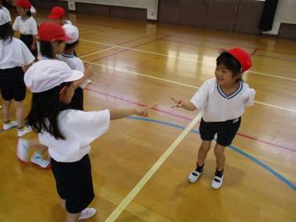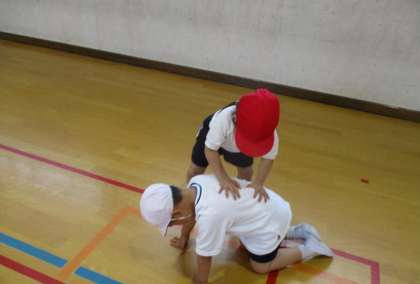 じゃんけんに負けたら,勝った人の周りを回る,馬とびをするなどルールを変えて楽しみました。