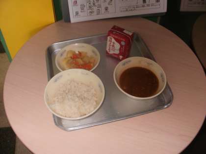 麦ごはん・牛乳・ハッシュドビーフ・さっぱりツナポテト