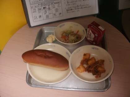 黒糖コッペパン・牛乳・豚肉のケチャップ煮・たっぷり野菜のビーフン・型チーズ