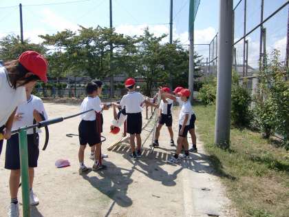 体育の時間は鉄棒をしました。自分で課題を立てて,逆上がり,前方支持回転,前方片ひざかけ回転などをがんばっていました。また,逆上がりの時の補助板を,みんなで支え合う姿は大変すばらしかったです。