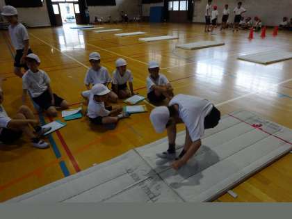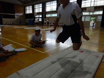 体育館では立ち幅跳び・反復横とび・長座体前屈・上体起こし