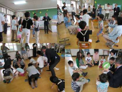 ゲームにも参加してもらい,とても盛り上がりました。普段はクラスだけで行っている学習も,たくさんの先生と一緒にするととても喜ぶ様子が見られました。