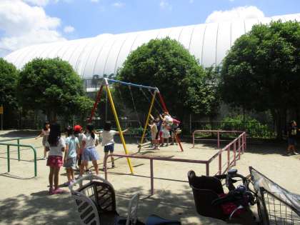 生活科の学習で校区探検をしました。自分たちが住んでいる町には,どんな場所があるのか?どんな自然があるのか?どんな人たちが暮らしているのか?みんなで見つけに行きました。北コースには,みんなが大好きな皆正寺公園があり,お茶休憩のついでにちょっぴり遊んで帰ってきました。来週は南コースを探検してきます。