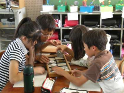 観察している石の中から,黒雲母を見つけて「宮沢賢治ってすごいな」という声も上がりました。