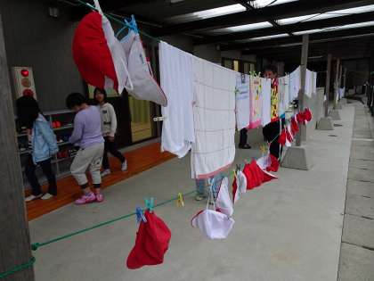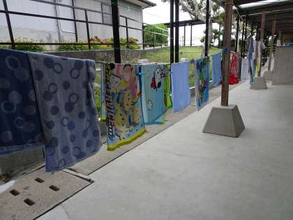 お風呂タイムが終わると,タオルがズラッと並びます。