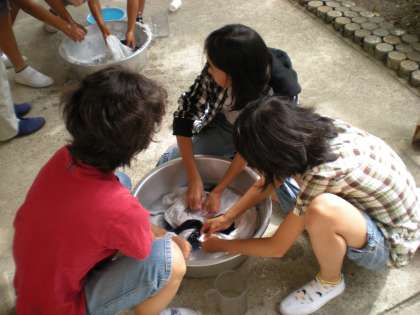 1時間目の体育の学習で使用した体操服を手洗いで洗濯しました。