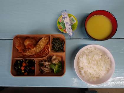 今日もたくさん活動し,夕食もおいしくいただきました。
