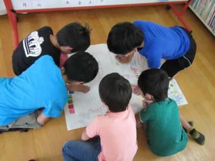 今日の休み時間は自分たちで作った「すごろく」で遊んでいました。