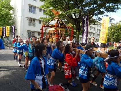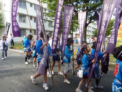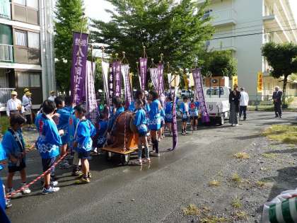 心配していたお天気も回復し,午前8時50分に子どもみこしが出発しました。たくさんの子どもたちが参加し,にぎわっています。
