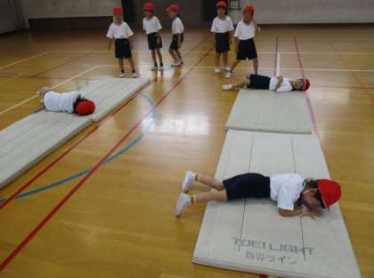 準備ができたら,マットの上をみんなでゴロゴロ!