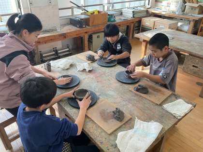 土粘土をこねて、土台を作り積み上げていくことでお皿の形を作っていきます。