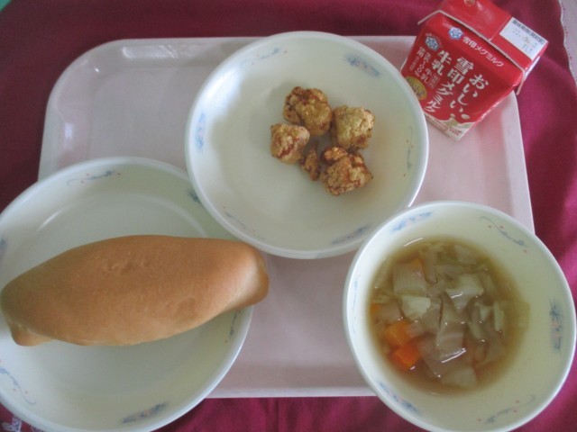 『スパイシーチキン』は、鶏肉とにんにく・ヨーグルト・カレー粉・塩・しょうゆで下味をつけて、粉をまぶして油で揚げました。ヨーグルトを使うことで、鶏肉がやわらかくジューシーに仕上がりました。口の中に広がるカレーの香りや、鶏肉のうま味を味わって食べました。