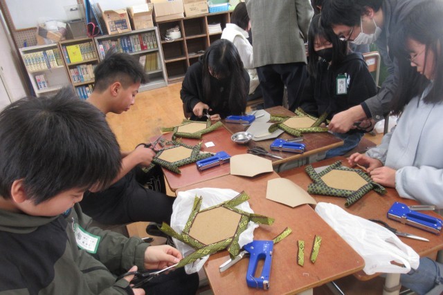 京畳の 匠のみなさんが 6年生にたたみ作りを教えてくださいました。