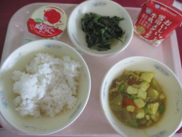 『和風カレーどうふ』は、豚肉・にんじん・たまねぎを炒めて、けずりぶしで取っただし汁で煮、さとう・みりん・しょうゆ塩・カレー粉で調味して