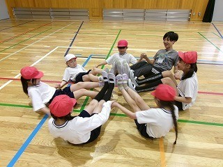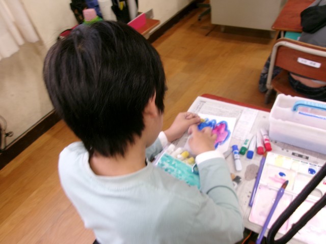 図画工作で友だちの作品を見ていいところを真似してみたり、体育でクラス全員で運動して楽しんだり、様々な形でコミュニケーションをとっています。