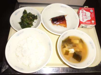 ◆ 今日の献立 ◆  ・ごはん   ・牛乳   ・さばのつけ焼き   ・ほうれん草のおかか煮   ・みそ汁