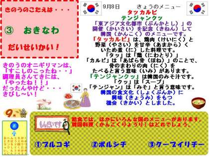 「東アジア文化都市」の開催を記念して今月の新献立は韓国料理です。