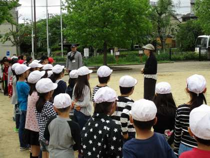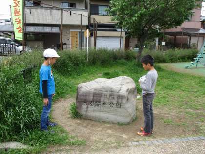 最後に,安井公園に行きました。多くの子どもが遊んだ経験のある場所です。今日は,遊ばずに公園の中の様子を観察しました。