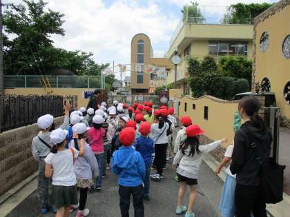 幼稚園や保育園を見たり,こども110番のおうちを確認したりもしました。
