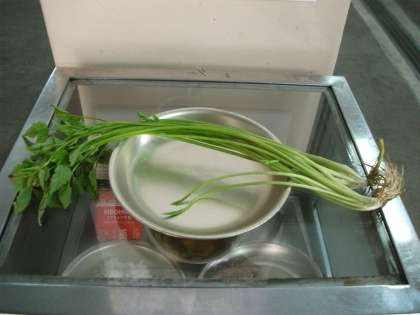 みそ汁に新しい物資として、せりが入りました。