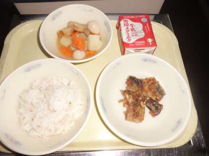 ◆ 今日の献立 ◆ ・麦ごはん ・牛乳 ・いわしのかばやき風 ・関東煮