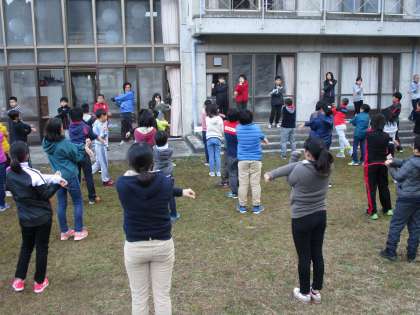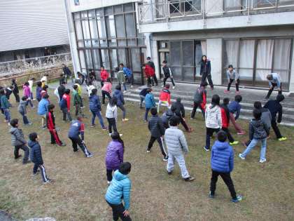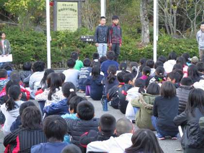 3日目は,快晴の朝を迎えました。7時10分から一緒に泊まっている他の2校と朝の集いを行いました。本校の代表もしっかりと学校紹介をしました。その後,場所を移動して安井小学校の朝の集いを行いました。