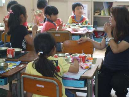 給食試食会が行われました。34名もの保護者の方に来ていただきました。食事の大切さや,現在の子どもたちのかかえているものなど,データをもとに,わかりやすくお話をしていただきました。その後,給食の参観をしていただいて,試食もしていただきました。普段食べなれないものも,とてもおいしそうに食べている様子を参観していただいて,とてもびっくりしておられました。