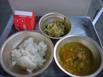 ★ 今日の献立 ★  ・夏野菜のあんかけごはん  ・牛乳  ・もやしの煮びたし