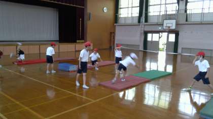回り方の連続や少しがんばればできそうな回り方に挑戦しています!友だちと協力しながら安全に学習を進めることができています。
