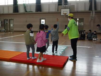 交通安全教室を行いました。横断歩道のわたり方や信号機の