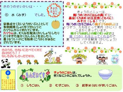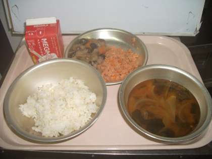■ 今日の献立 ■ ・梅さけごはん ・牛乳 ・黒豆の五目煮 ・みそ汁