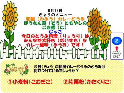 和風カレーどうふは,スパイシーで夏に食べやすい献立です。