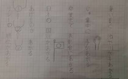 同じ言葉でもいろいろな意味をもつ言葉を調べてクイズを出し合いました。最後にはいろいろな意味を言葉を使って詩を作りました。