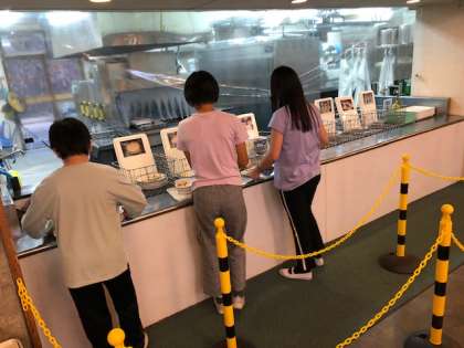 夕食は,エビフライ,揚げ餃子,ミニハンバーグ,ポテトフライなど,子どもたちの好きなものばかりでした。比較的早い夕食でしたが,活動でお腹が減っていたのか,子どもたちはペロリと平らげていました。