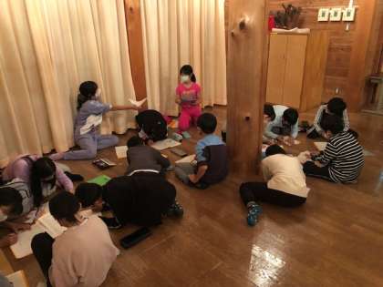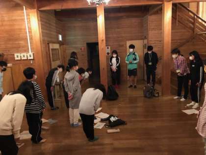 子どもたちはグループごとに協力し,時間通りにプログラムを進めています。昨日の夜も,キャンプファイヤーの興奮が冷め止まぬ中,みんなで1日の振返りや健康観察をした後,2日目の予定を確認していました。