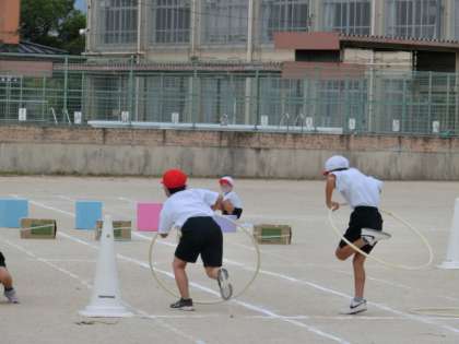 1年生のアイデア走は,国語科の教科書に出てくるある物語をテーマに走ります。