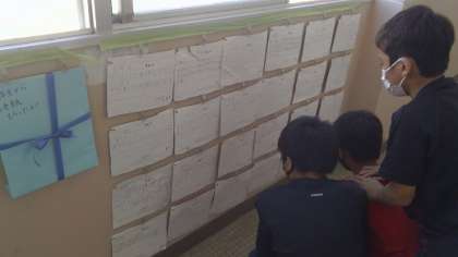 授業参観 体育の日では,6年生が係活動の一環として,集計係や放送を頑張ってくれました。そんな6年生に,2年生と3年生からありがとうの気持ちを込めた手紙をもらいました。