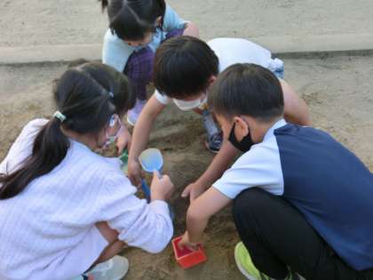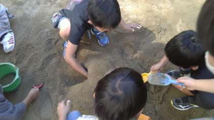 と,砂の感触を楽しみつつ,やはり何かをつくろうとする子どもたち。