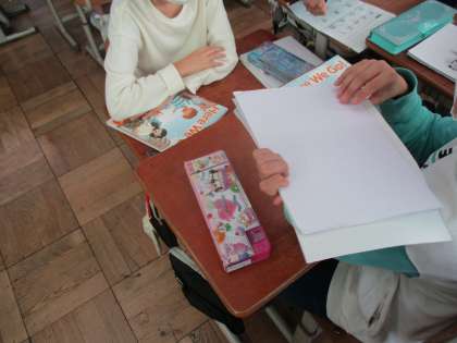 外国語の授業で,友だちにできることとできないことをインタビューしました。その後,インタビューした内容をもとに,「この人は誰でしょう」クイズを行いました。「友だちの新たな一面を発見した。」と振り返っている子もいました。