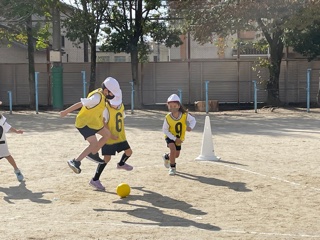 今日はさっそくチームに分かれてゲームをし,それぞれでルールをしっかり確認することができました。
