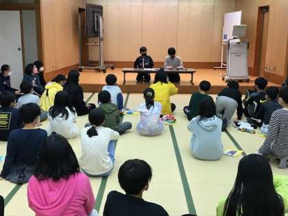 お風呂の後に,レク係の司会で,大広間でレクリエーションをしました。ダンス・カラオケ・漫才・ショートコントなどがあり,みんなで大いに盛り上がりました。