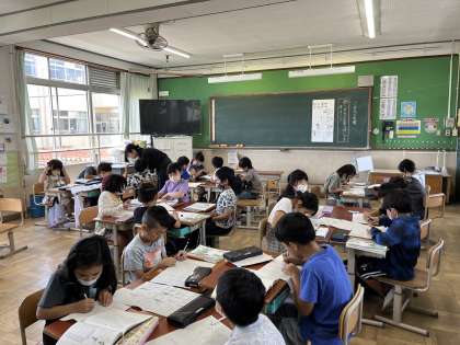 3年生の国語科の単元「こそあど言葉を使いこなそう」では、グループで相談しながら、こそあど言葉見つけに一生懸命取り組んでいました。